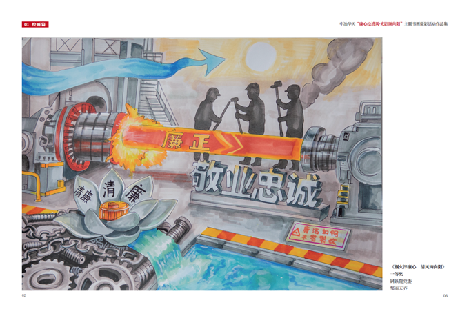 且看!別出心裁的繪畫作品區(qū),選手們緊扣“廉潔與向陽”主題,以筆傳情,以畫述理,或寓情于蓮梅,借花語頌廉寄志、或聚焦一線工作場景,記錄華天人的奮斗之姿,謳歌實(shí)干作風(fēng)、或巧思創(chuàng)意“廉”字,結(jié)構(gòu)精妙,暗藏玄機(jī),予人耳目一新;
