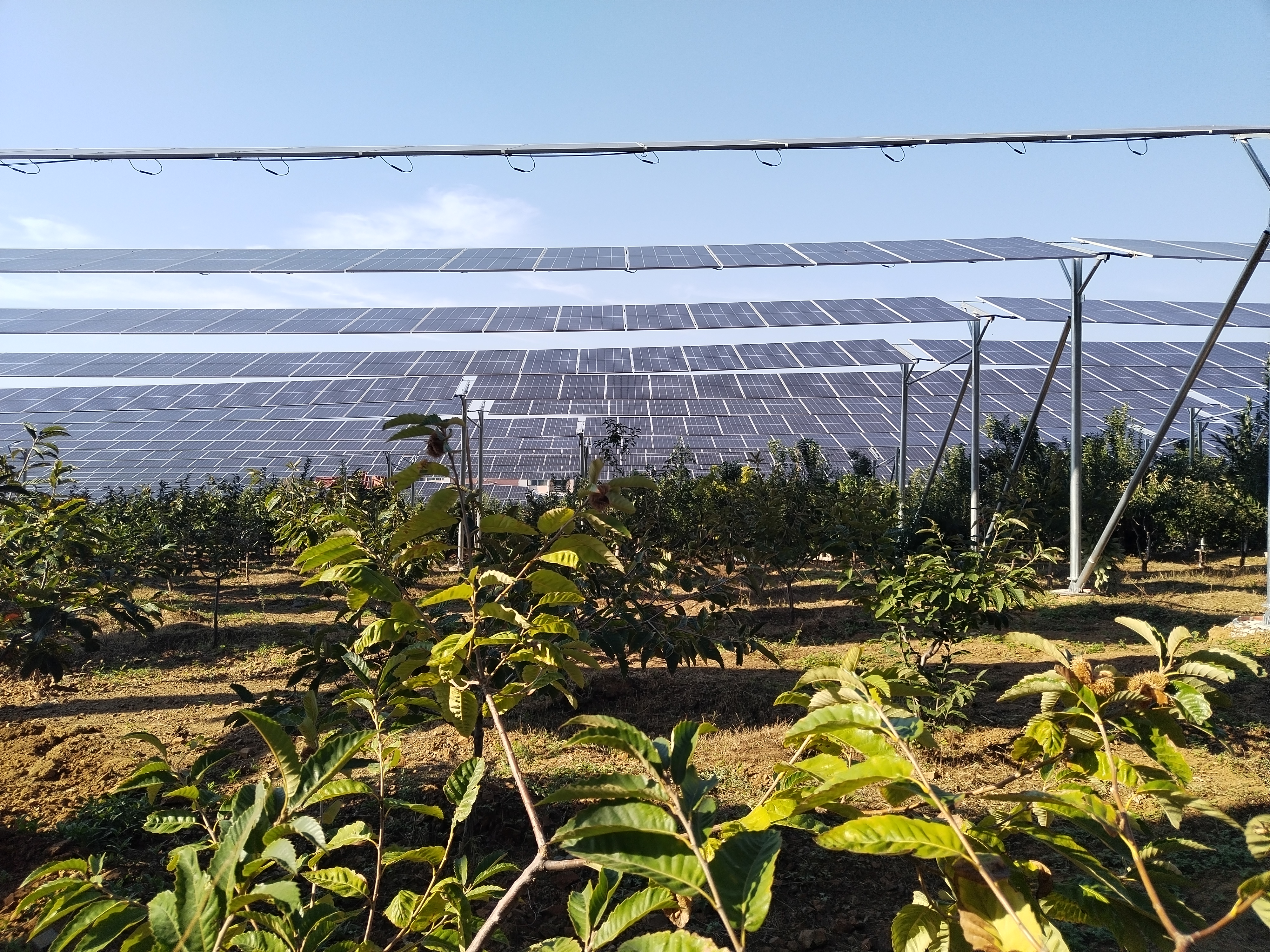 由于該項(xiàng)目建設(shè)場(chǎng)地位于廠區(qū)大學(xué)生公寓南側(cè)綠化樹(shù)林區(qū)域,場(chǎng)地復(fù)雜,建設(shè)難度大。中冶華天團(tuán)隊(duì)深入現(xiàn)場(chǎng)反復(fù)踏勘,深度挖掘業(yè)主的潛在需求,創(chuàng)新提出“光伏+景觀園林”一體化設(shè)計(jì)理念,這是一種將光伏發(fā)電與林業(yè)種植相結(jié)合的可持續(xù)發(fā)展模式,不僅能夠帶來(lái)顯著的經(jīng)濟(jì)效益,還具有重要的推廣價(jià)值。對(duì)這一項(xiàng)目而言,采用林光互補(bǔ)型的兩索柔性支架結(jié)構(gòu)光伏發(fā)電系統(tǒng)方案,既充分利用了現(xiàn)場(chǎng)的自然條件,又有效地提升了土地資源的利用效率,同時(shí)增強(qiáng)了土地的生態(tài)效益,發(fā)揮綠化防風(fēng)、護(hù)土、涵養(yǎng)水源和凈化空氣等多種生態(tài)功能。